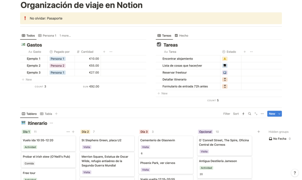 Make your trips unforgettable with our organizational template for Notion! Designed to simplify the planning of your adventures, this template gives you an efficient way to manage all aspects of your trip, from expenses to tasks to your daily itinerary.
